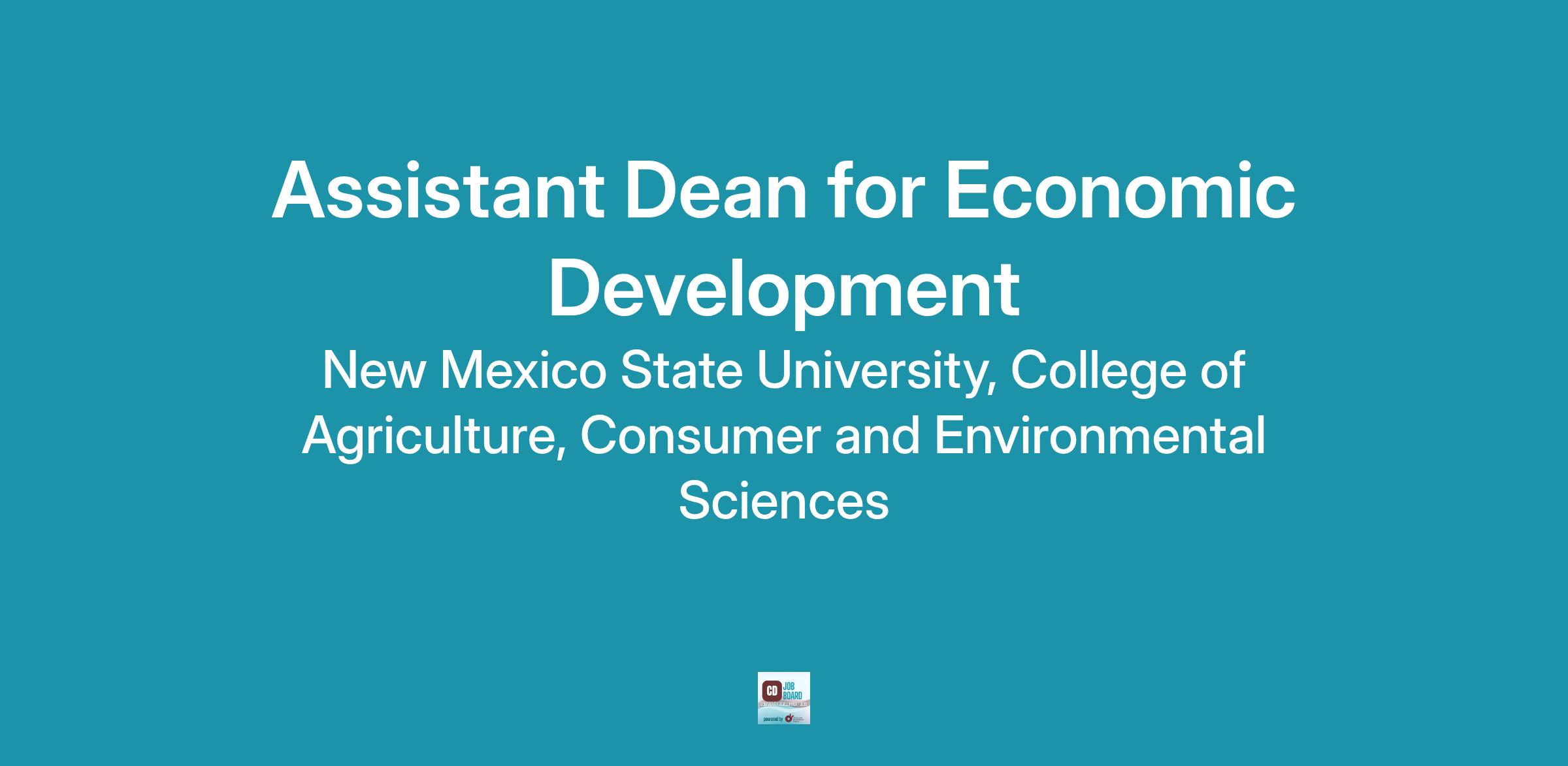 We are seeking an Assistant Dean for Economic Development in the College of Agricultural, Consumer and Environmental Sciences at New Mexico State University. This position will work closely with college leadership and hold an academic appointment in either the Department of Agricultural Economics and Agricultural Business or the Department of Extension Economics.