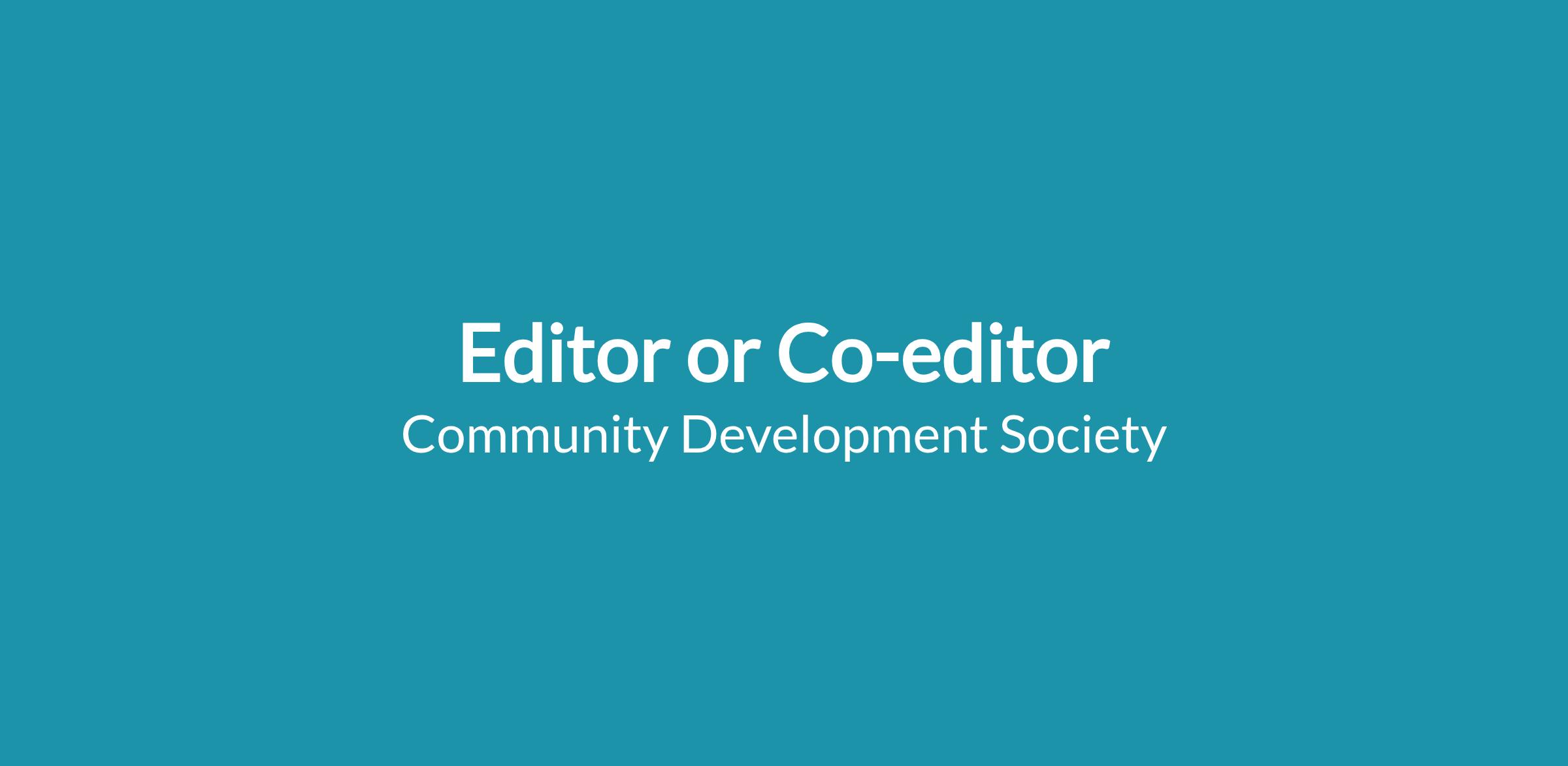 Rhonda Phillips, because of other professional duties, has stepped down as co-editor effective December 31, 2025, creating an opening for a co-editor starting in January 2026. Norman Walzer will continue as co-editor until July 31, 2026, to ensure continuity, or step down when editor position has been filled, after ensuring a smooth transition. The new editor can be a sole editor, recruit another co-editor, or establish a panel of associate editors (like Community Development).