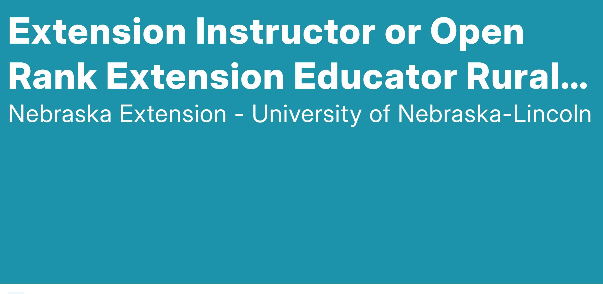 We invite you to learn more about this role and Nebraska Extension using the following links: Our Strategic Direction | Nebraska Extension and Nebraska Extension – Rural Prosperity Nebraska. Nebraska Extension is an organization that values individuals who demonstrate excellence, adapt easily, exhibit a passion for helping others, are team players, and are excellent communicators.